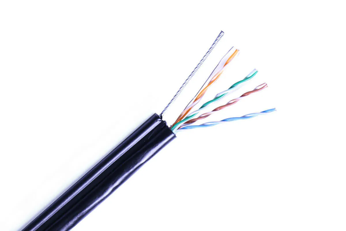 (DR-140201) Кабель витая пара кат.5е, 4 пары U/UTP, жила 0,51 (+/- 0,01), PE, черный, внешний с тросом, кат 305